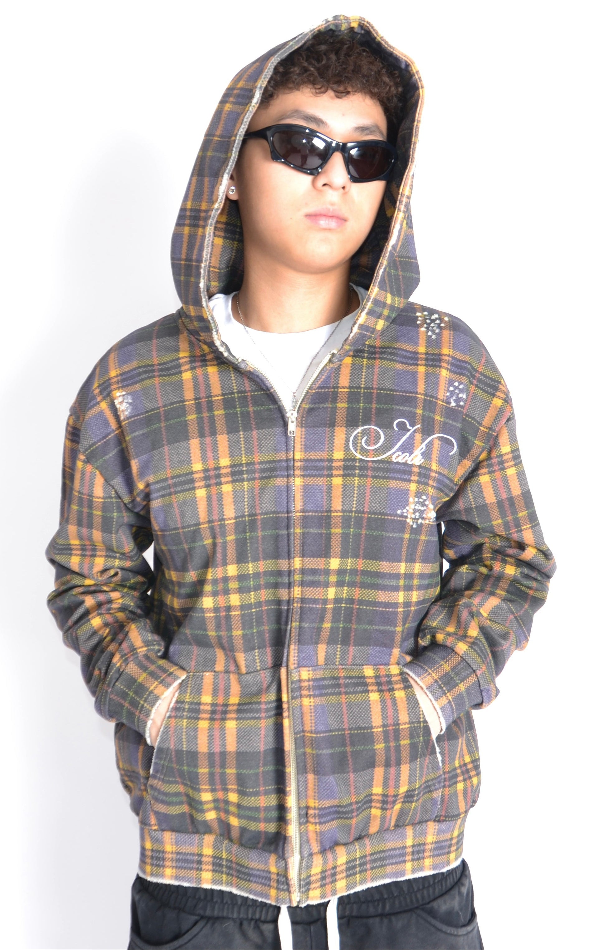 Hoodie is made from 100% 380gsm waffle thermal cotton, it contains an embroidered chest logo, distressing on cuffs, chest, and hood finished with a custom woven label as the neck tag.